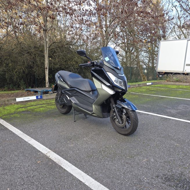 Abaissant ainsi le centre de gravité, cette batterie est placée en partie basse du châssis. Du fait de son poids et de sa taille, celle-ci n’est pas amovible. Intégré au tablier, le câble de recharge permettra de charger ce scooter électrique sur une prise 220V classique. Le chargeur embarqué présente une intensité de 18 A. Pour charger sa batterie jusqu’à 80 %, le temps de charge sera de 4 heures. Jusqu’à 100 %, 6 heures.